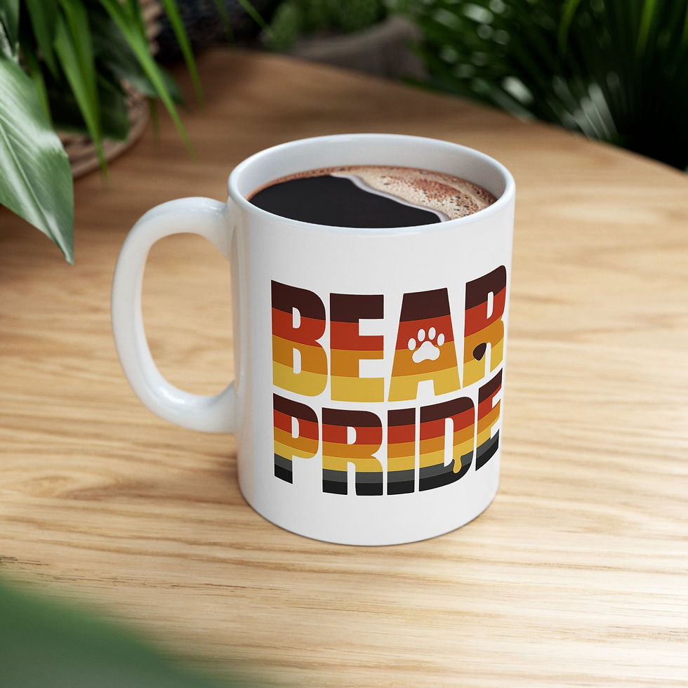 Bold bear pride mugs for the gay bear community and LGBTQ+ family. Perfect gift for a daddy bear, bear cub or anyone who loves their morning coffee with pride. Available in 11oz and 15oz.