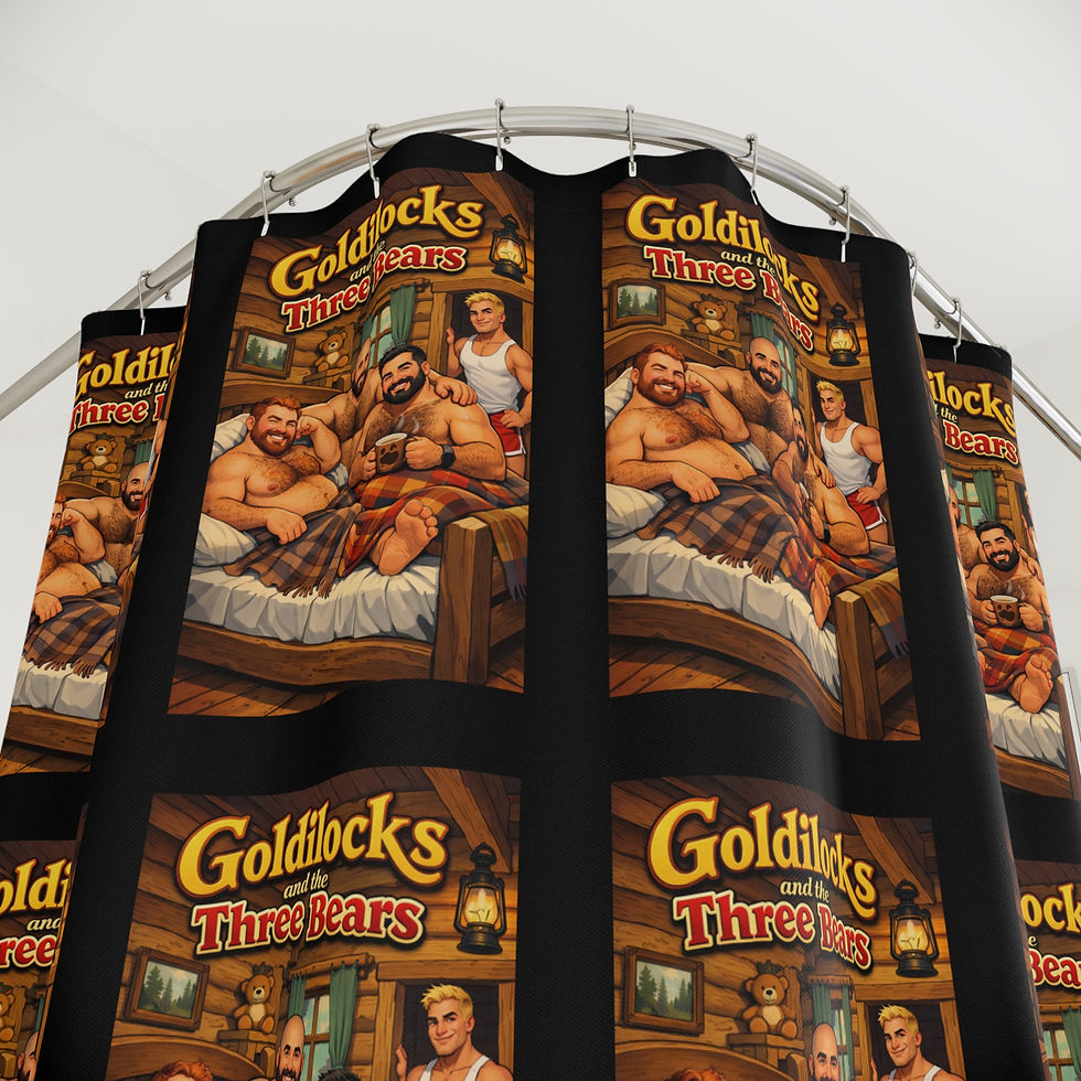 Bold bear pride shower curtains for the gay bear community and LGBTQ+ family. Make every bathroom a pride statement. Unique LGBTQ+ gift for any bear who loves bold home decor.